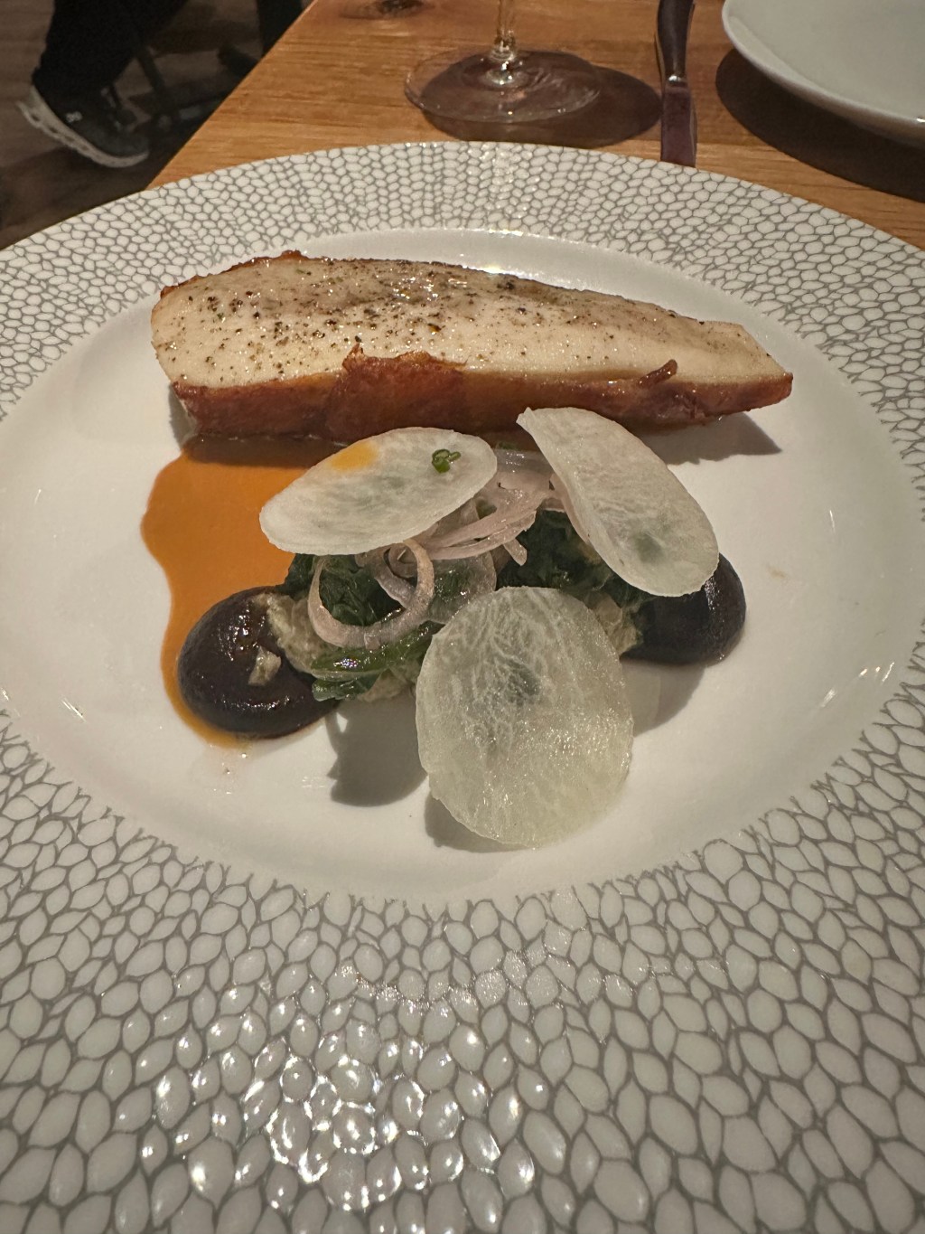 Our next dining adventure took place during my wife’s and my anniversary trip from San Francisco to San Diego. In Santa Monica, Mélisse offers a two–Michelin-star menu focused on French cuisine. When we arrived, the host greeted us warmly and seated us in an intimate room with no more than five tables. The open kitchen